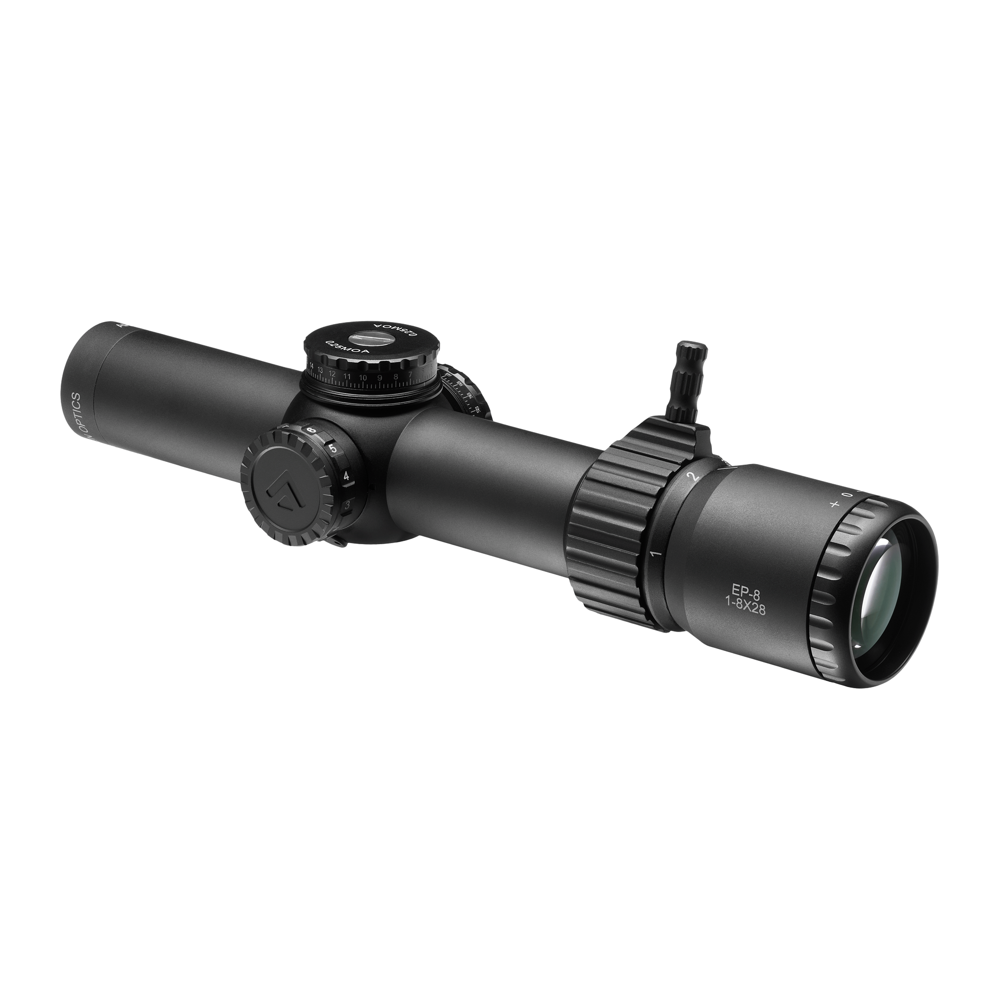 The LPVO (Low Power Variable Optic) has long since earned its place, bridging the gap from holographic/red-dot types to high magnification optics not traditionally well suited in CQC (Close Quarter Combat) situations. With ever increasing capability, the LPVO has become a staple, allowing tactical teams and competitive shooters to get the most out of any particular member instantly. The EP-8 1x-8x thing edges and wide FOV (Field of View) make this true 1x perfect for close quarters, with a quick throw of the lever to 8x increasing effective range at a moments notice.
