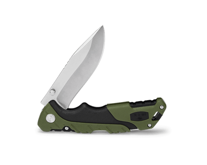 A multi-purpose alternative to traditional hunting knives, the Pursuit Series fills the need for a mid-range hunting knife designed from the beginner to the experienced, serious hunter. Added detail was put into the design creating a comfortable, non-slip profile, and strong lockback, dependable blades. Designed for excellent performance, the Folding Pursuit Large knife is a perfect field option. Imported sheath.
