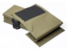 Fold-up, with hand straps for easy carrying. Olive green diamond cordura material with non-slip rubber for elbows. Special high density foam inside.