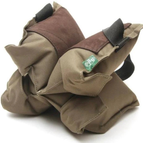 Rubber lining on bottom and suede leather top. Filled with plastic pellets. For ease of carrying a long shoulder strap is attached.