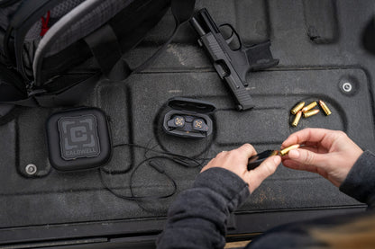 The E-MAX Shadows Pro are your favorite E-MAX Shadows with some new bells and whistles. The E-MAX Shadows Pro connect via Bluetooth to your device for up to 6 hours of music or phone calls. The redesigned pro version of the Shadows feature push button controls to make it easy to adjust ambient noise, change volume, answer phone calls, and control your voice assistant app like Siri. This product contains an optional magnetic lanyard and a rechargeable storage case that has an LED Battery Level Indicator for each ear bud so you know when your E-MAX Shadows Pro are fully charged and ready for the range. Like the E-MAX Shadows, these come with multiple size earplug options for a custom fit for anyone. The custom sized foam tips achieve a rating of 25dB NRR.