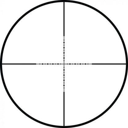 Its modified duplex reticle has 1/2 mil diameter dots on the fine center crosshairs, with dashes midway between each dot to assist in hold-over/under, range estimation, or target size estimation. Complementing the performance of the scope is a lightweight and durable anodized magnesium alloy housing, with a 1" one-piece maintube that is nitrogen-filled and O-ring sealed to be water and fogproof. Threads on the ocular and objective provide a solid mounting point for optional accessories such as sun shades.