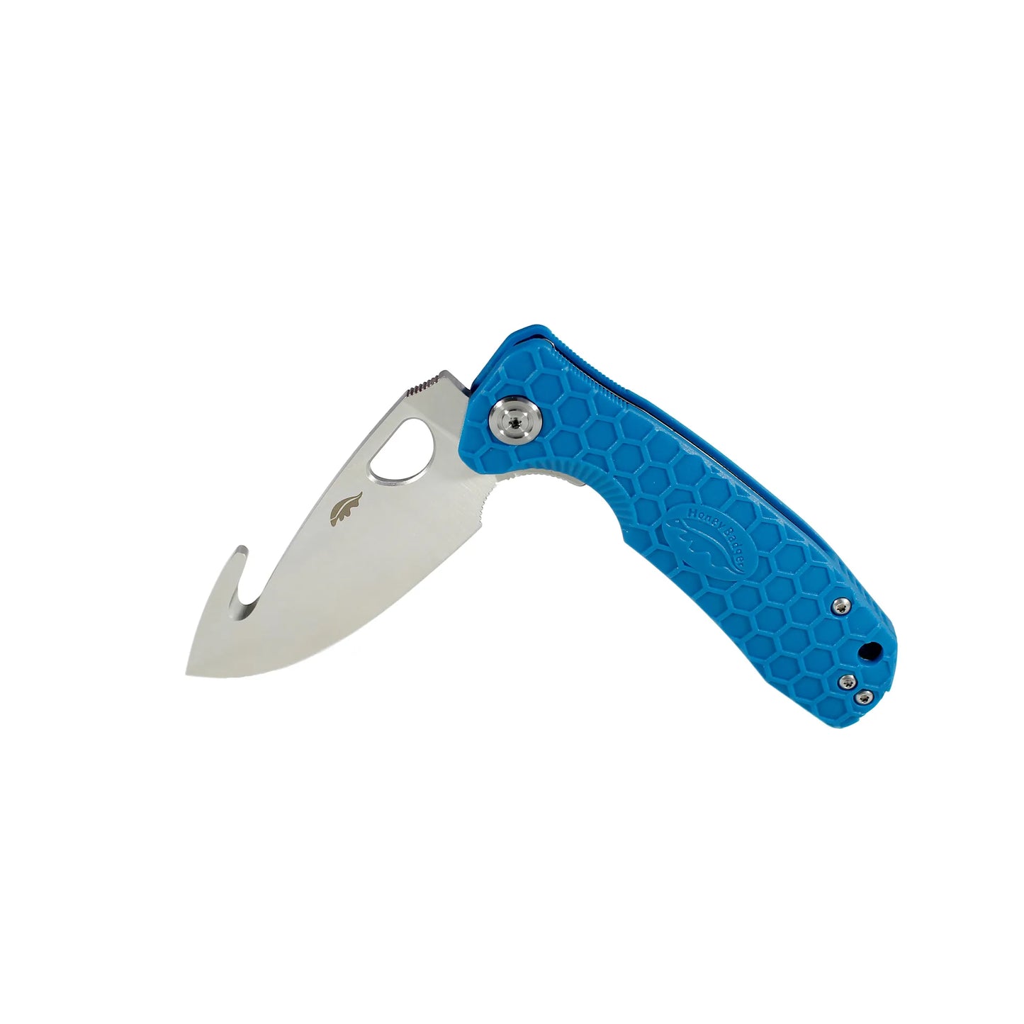 Technically, a gut hook is more of a blade feature as included on a blade, than a blade shape itself. Gut-Hooks usually appear as a small, sharpened hook-like curve that interrupts the spine as it slopes toward the point. These have one main use: field dressing wild game. The design of the hook allows hunters to cut through an animal’s skin without piercing or damaging what lies under it. Honey Badger’s specific gut-hook design features exactly the same cutting-edge profile as the drop point Flipper model, but with an added gut-hook for the field dressing of game.