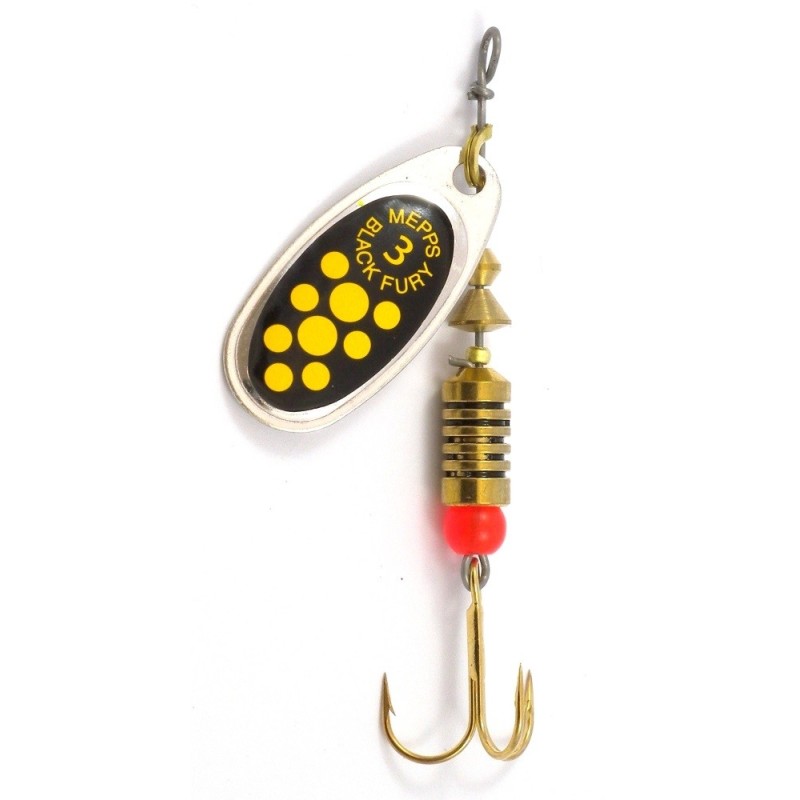 Mepps Black Fury Spinner Yellow Dot Silver Blade #3
