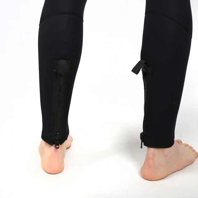 5mm Double Nylon II Neoprene with plush pile inner jersey, high stretch Innospan Arms and YKK type #10 Zippers on ankles, for easy entry.