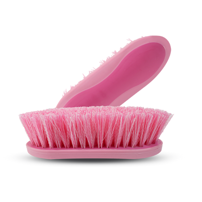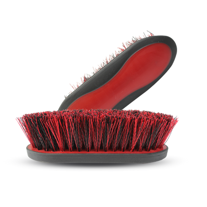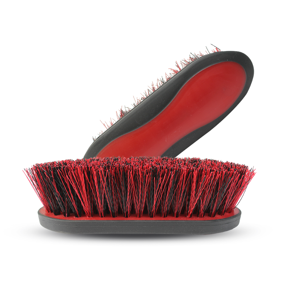 Multi coloured dandy brush, shaped to fit comfortably in your hand. The perfect brush to remove dried sweat and mud from the horse's coat, or to brush out manes and tails.