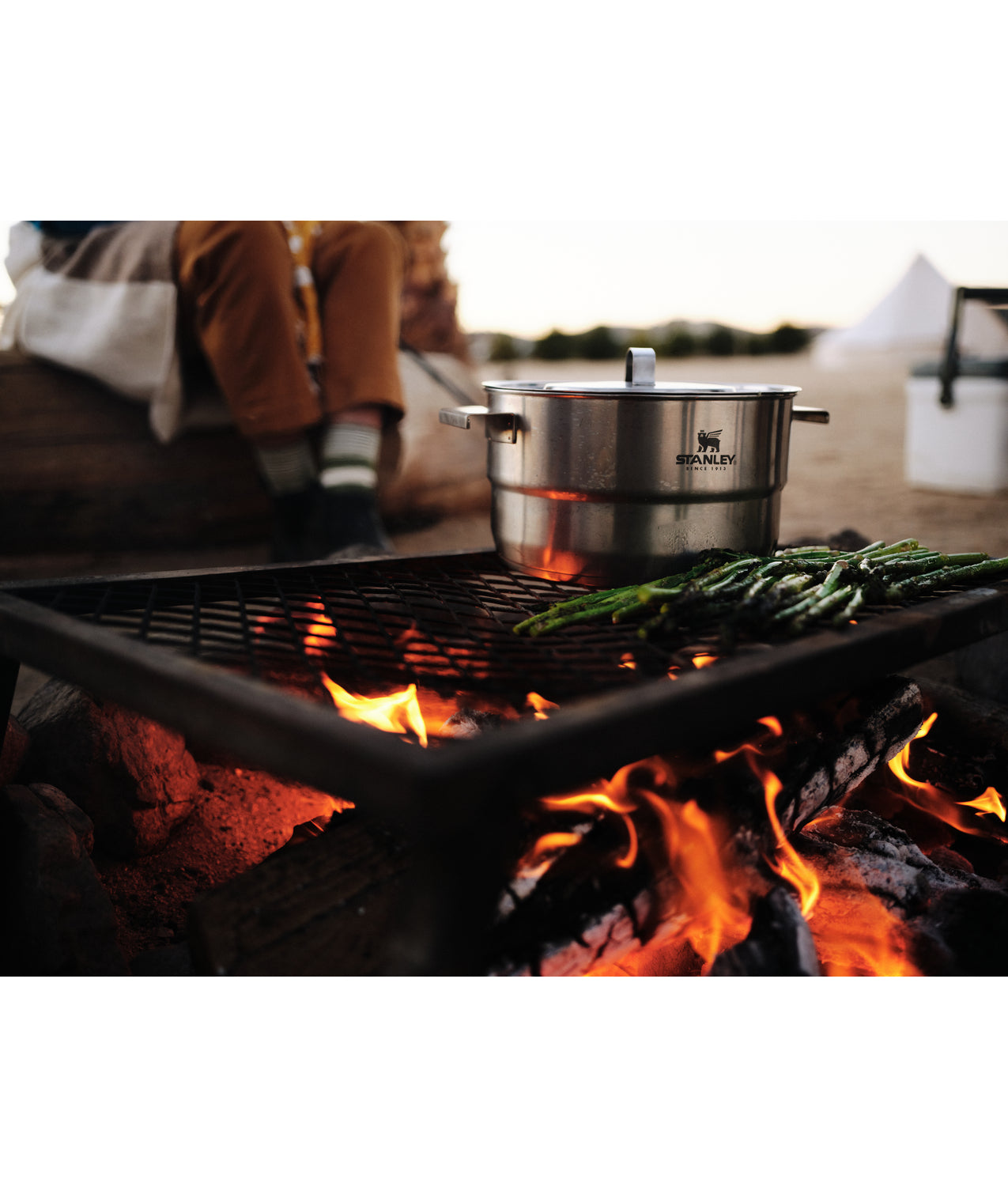 Enjoy delicious hot food straight from the campfire or camp stove. The Stanley stainless steel 6-piece cook set is perfect to cook a tasty meal for two in a 1.0L stainless steel pot. The locking pot handle extends for stable cooking. When it’s time to eat, 2 bowls and 2 sporks allow for sharing. It can hold a small canister of fuel and it nests for easy carry-in and carry-out.