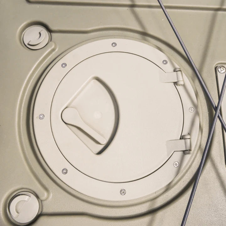 Equipped with practicality in mind, the Shad comes with multiple storage options. From an equipment hatch at the kayak's bow to the convenient round hatch behind the paddler, and a generous tank-well in the swallowtail stern, complete with bungee cords to secure your gear.