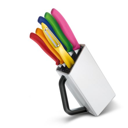 Modern design and great functionality, includes all your favourite Victorinox Swiss Classic paring knives and peeler. Your perfect aid to a tidy functional kitchen.